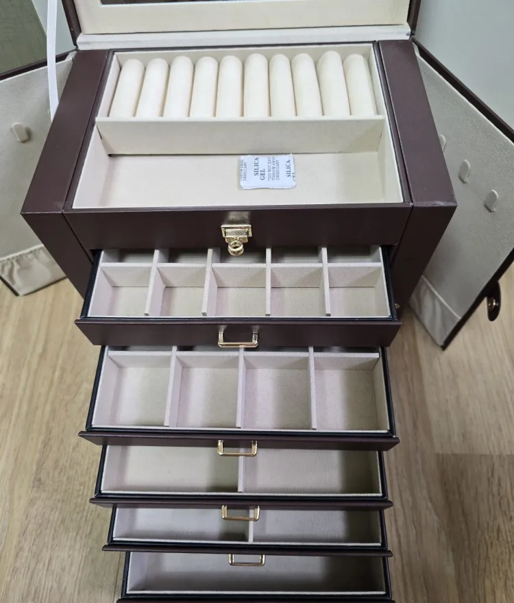 With its refined design and premium finish, the Majestique features multiple compartments, spacious drawers, and side doors that hold necklaces, earrings, bracelets, and rings without tangling or scratching. It also includes an internal mirror to make your daily selection effortless.